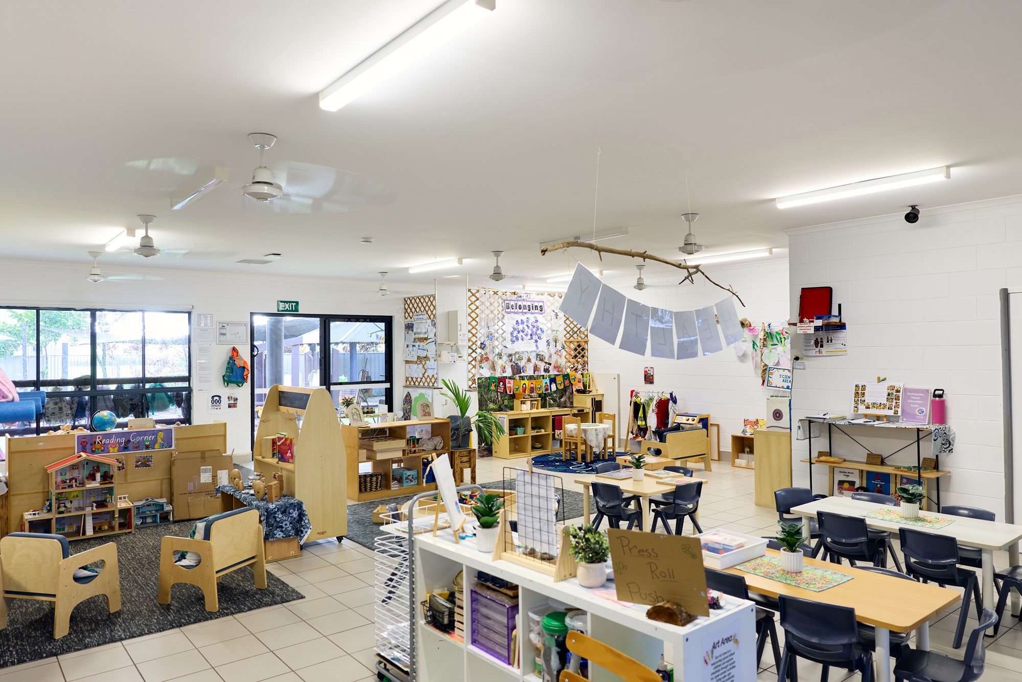 The childcare centre backs onto a quite block with views of mountains and cane paddocks. A lovely land breeze flows through children’s yards and rooms.