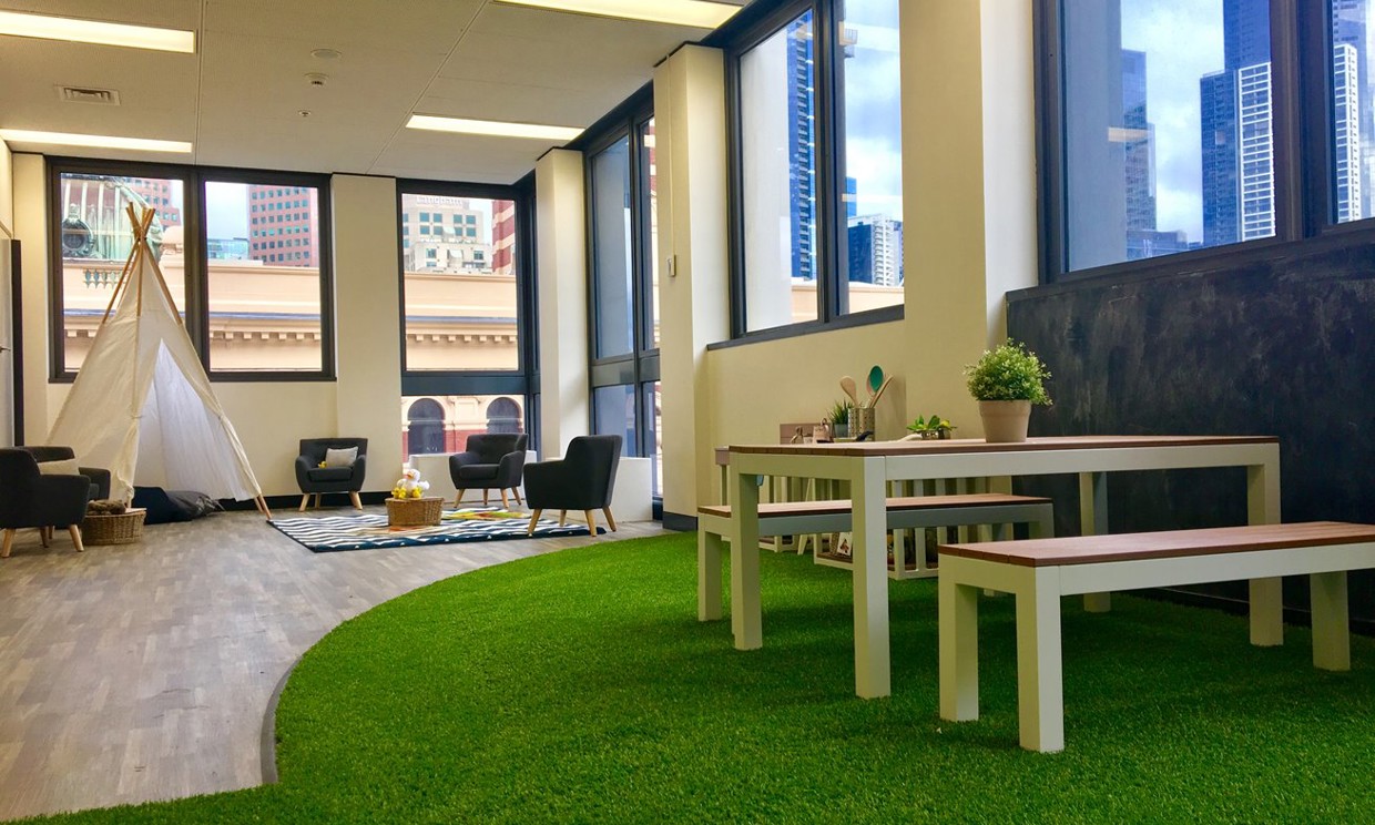 The centre, on the fourth floor, offers working parents convenience and is in a high demand area. It features an outdoor play space with a new mud kitchen and sand pit. Meals will be prepared by the cook on the premises.