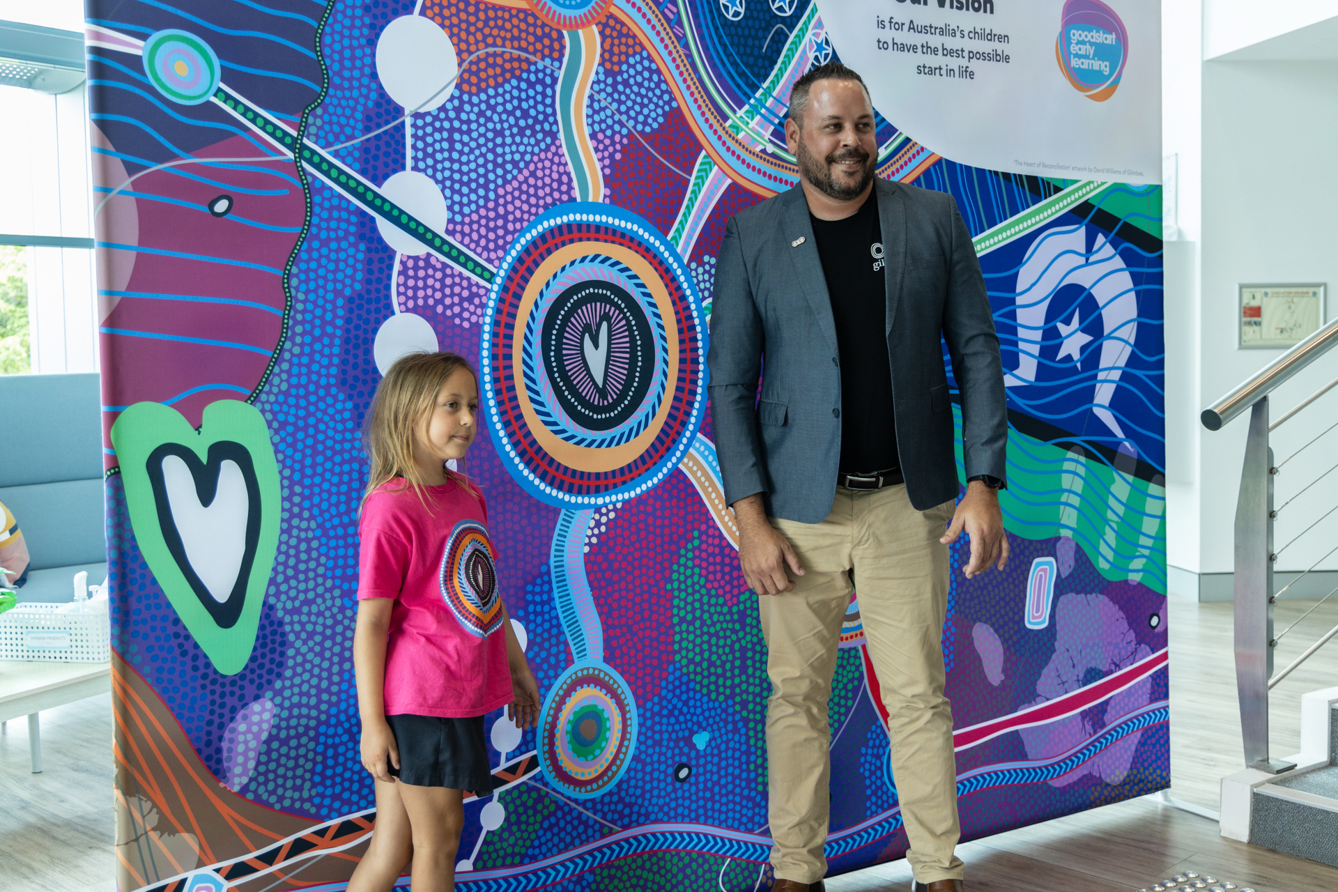 Part of the event was the official unveiling of ‘The Heart of Reconciliation’, a powerful artwork created by former Goodstart parent and Wakka Wakka artist David Williams representing Goodstart’s RAP journey and path forward.